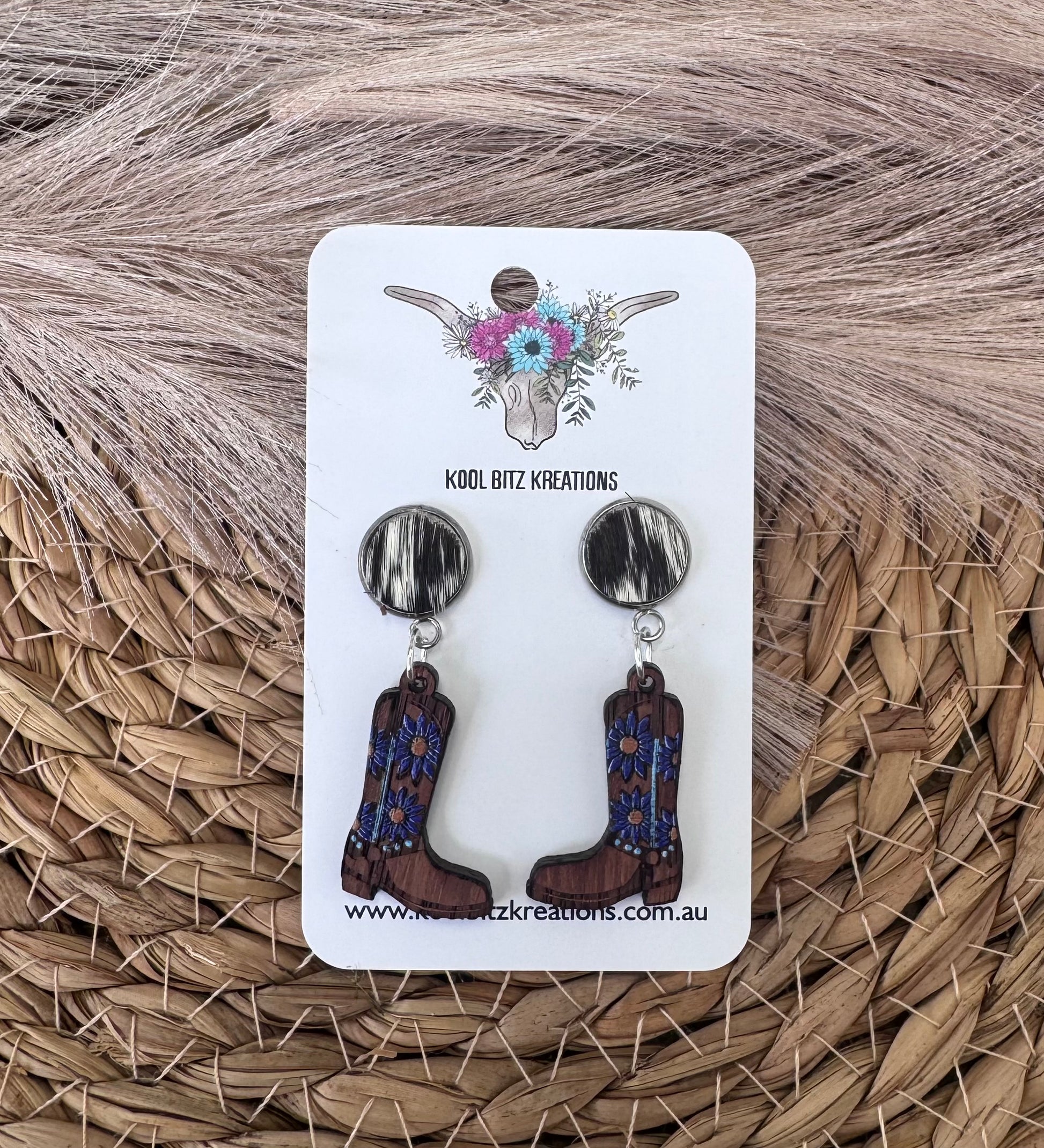 Black Cowhide Dark Blue Floral Boots